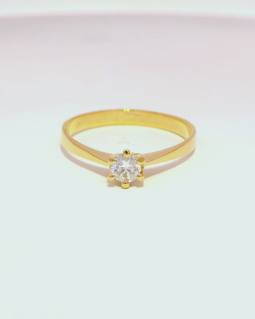 Este elegante anillo presenta un delicado brillante de 0,20 cts en el centro, perfecto para cualquier ocasión especial. Su diseño minimalista resalta la belleza del diamante, convirtiéndolo en una pieza atemporal que complementará cualquier atuendo.
